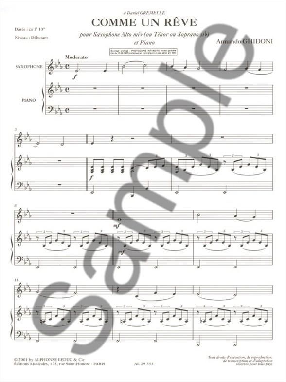 Comme Un Reve pour Saxophone Alto (Ou Tenor ou Soprano) et Piano