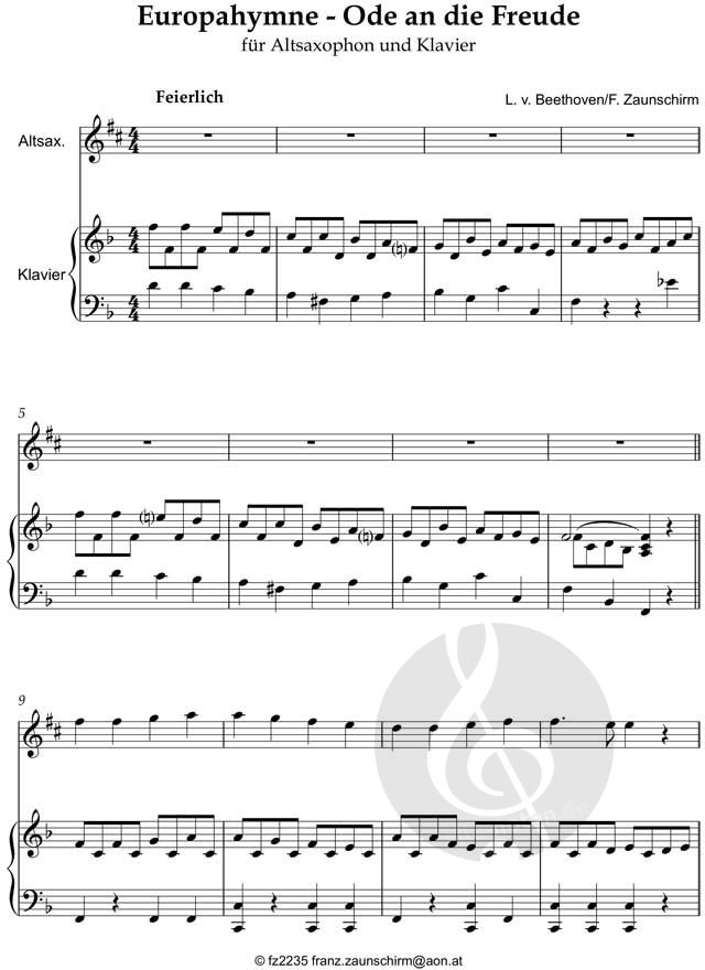 Ein klassisches Arrangement von Beethovens Melodie mit einfacher Klavierbegleitung, das eine würdige und optimistische Stimmung erzeugt.