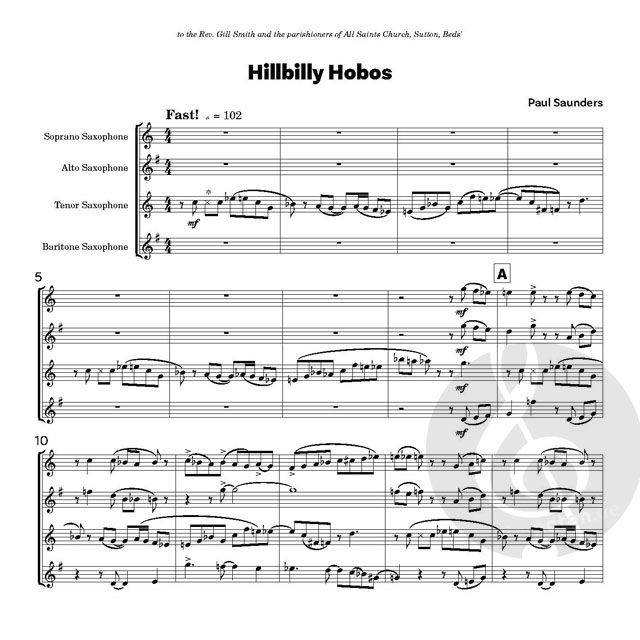 Ein fabelhaftes Stück im Pseudo-Bigband-Stil: Saunders von seiner besten Seite. Paul ist ein erfahrener Musiker, der in der Londoner West-End-Show-Szene gut bekannt ist. Auf der Beispiel-MP3-Datei auf dieser Website wird Hillbilly Hobos von James Mainwaring an allen Saxophonen gespielt.