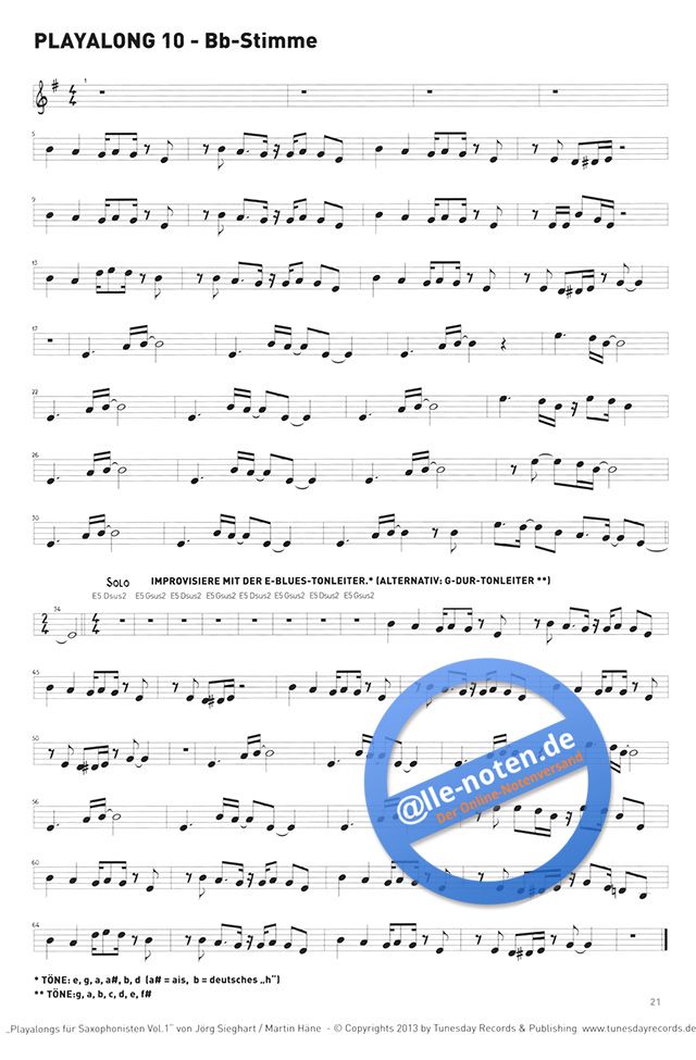 'Playalongs für Saxophonisten' gehen gut ins Ohr und können von allen ambitionierten Saxophonisten autodidaktisch oder auch mit Lehrerhilfe erarbeitet werden. 10 eingängige, nicht zu schwer zu spielende Melodien im Rock/Pop-Genre, teilweise mit kurzen Improvisationsanteilen, wurden eigens hierfür komponiert. Die Titel des Notenheftes sind für Alt- und Tenor-Saxophon notiert und können auch von anderen Instrumenten (z.B. Trompete) gespielt werden. Käufer des Heftes können ergänzend dazu die C-Stimmen downloaden. Auf der CD zum Heft liegen die Stücke jeweils in einer Anhör- (Vollversion) und einer Mitspiel-Version (Playalong) vor. Die Spiellaune wird gestärkt, während man gleichzeitig das persönliche Timing verbessert!