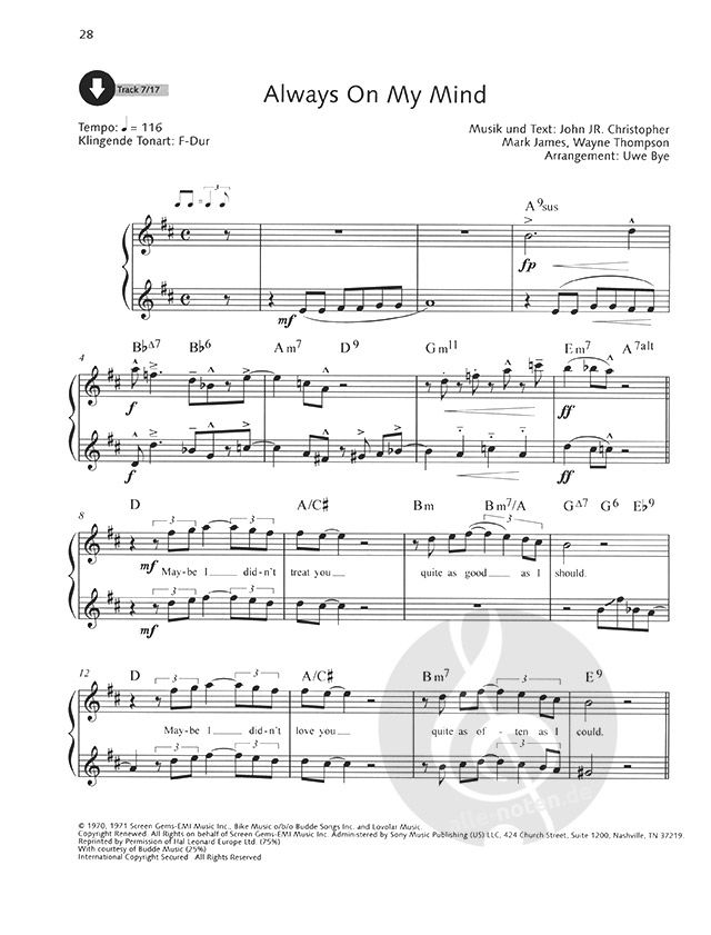 Aus dem Inhalt: Enjoy The Silence - Hello - Viva La Vida - Always On My Mind - Bette Davis Eyes - uvm.