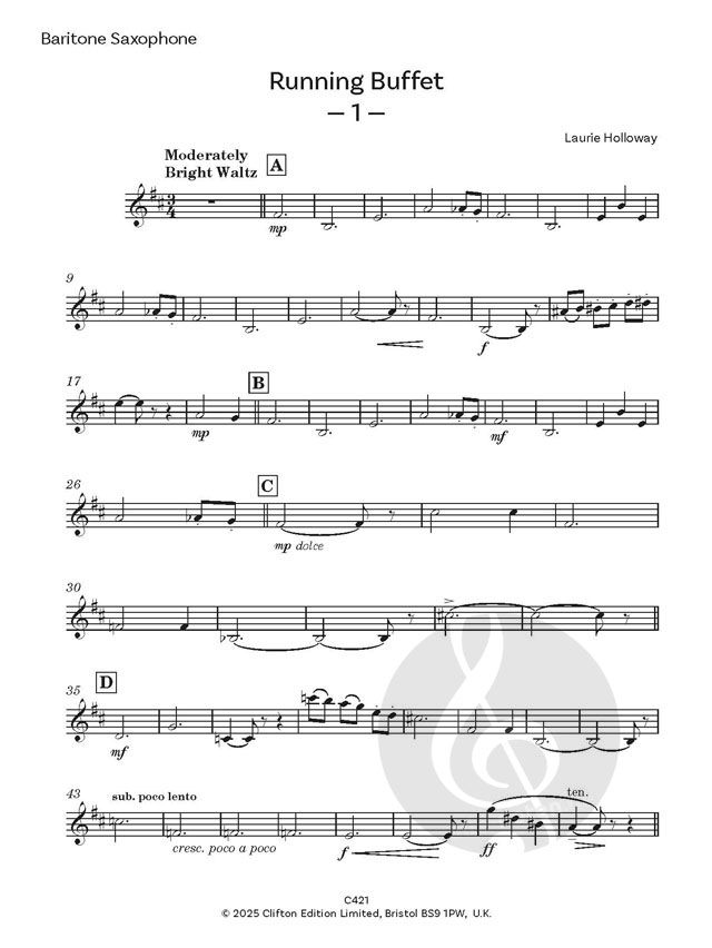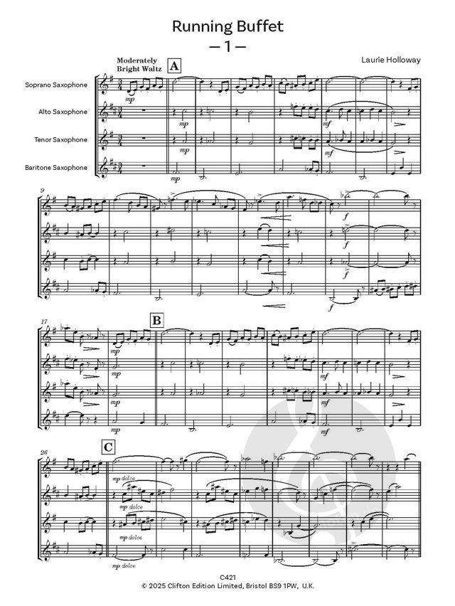Ich wurde vom Ebony Saxophone Quartet gebeten, etwas für sie zu schreiben. Ich komponierte diese Suite und nannte sie zu Ehren von Monsieur Buffet, dem berühmten Saxophonisten Laurie Holloway.