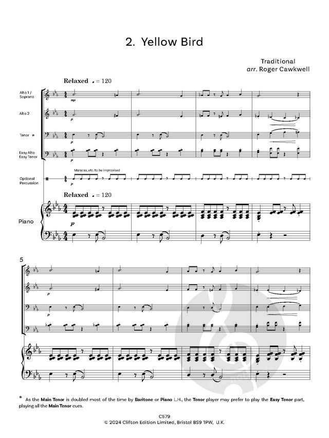 Einschließlich optionaler Sopran- oder Klarinettenstimme; Baritonsaxophon; einfaches Altsaxophon; einfaches Tenorsaxophon; Keyboard.