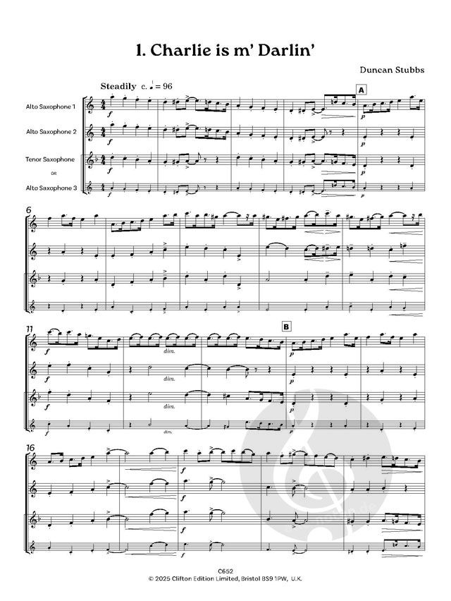 Spielbar entweder mit drei Altsaxophonen oder zwei Altos und Tenor.