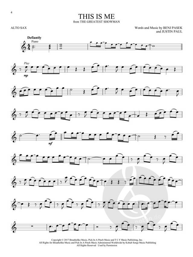 from the Greatest Showman - Alto Sax with Piano Accompaniment