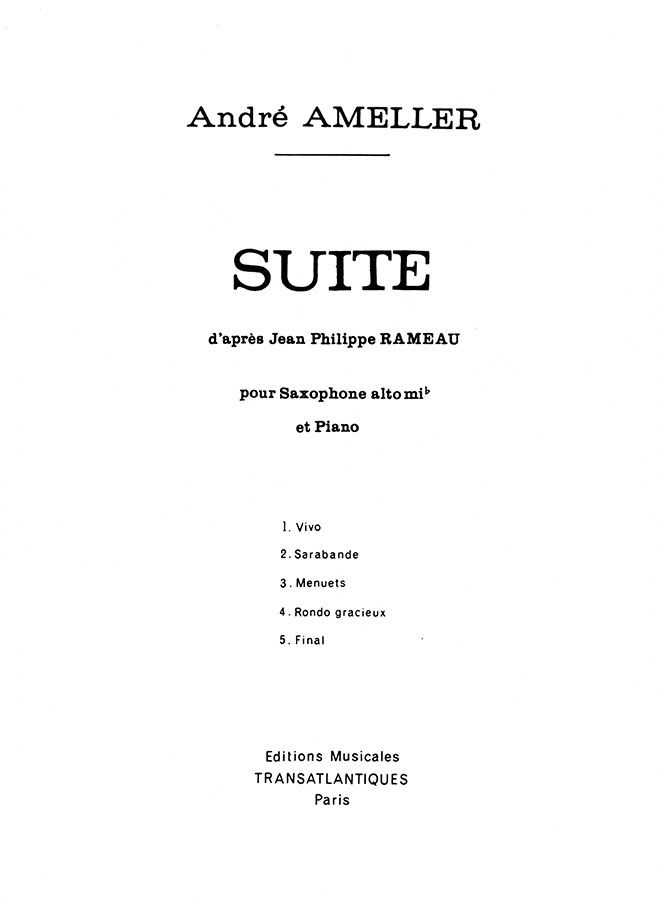 Suite D'Apres Rameau Saxophone Alto et Piano