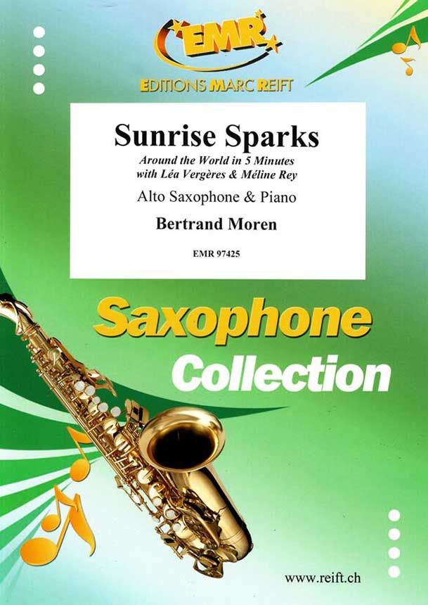 Sunrise Sparks ist ein Werk in fünf Sätzen, das als musikalisches Reisetagebuch konzipiert ist. Es wurde für zwei junge Cousinen geschrieben, Léa und Méline, die beide leidenschaftlich gerne Kornett spielen. Das Stück folgt ihrer imaginären Reise durch kontrastreiche Landschaften jede steht für eine Etappe ihrer Weltentdeckung. Die Reise beginnt mit "Takeoff", einem hellen, rhythmischen Auftakt, in dem die Aufregung des Aufbruchs in jeder Note spürbar ist. Der zweite Satz, "Camels in the Desert", entführt die Zuhörer in eine langsame, schaukelnde Wüstenwanderung unter glühender Sonne mit orientalischen Farben und geheimnisvoller Atmosphäre. Es folgt "Jungle Rush", ein lebendiger Tauchgang in üppige, dichte Vegetation, geprägt von energiegeladenen Rhythmen und pulsierender Perkussion. "Over the Ocean" bietet eine kontemplative Pause – ein Flug über das Meer, getragen von schwebenden Harmonien und lyrischen Linien. Zum Schluss bringt "Landing" das Werk zu einem virtuosen, energiegeladenen und leuchtenden Finale, in dem das Anfangsthema erneut erscheint diesmal jedoch umgekehrt. Die beiden Kornette antworten einander, verschmelzen, fordern sich heraus und ergänzen sich – wie zwei Freundinnen, die gemeinsam reisen, entdecken, träumen und Seite an Seite wachsen. Sunrise Sparks ist ebenso eine Hommage an das Reisen wie an die musikalische und menschliche Verbindung, die die beiden jungen Interpretinnen verbindet.