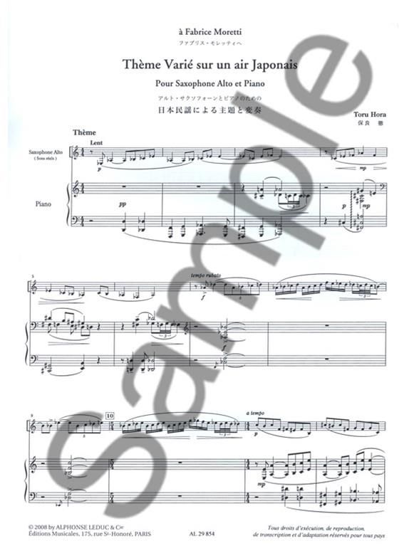 Hora Toru Theme Varie Sur Un Air Japonais Alto Saxophone Piano Book