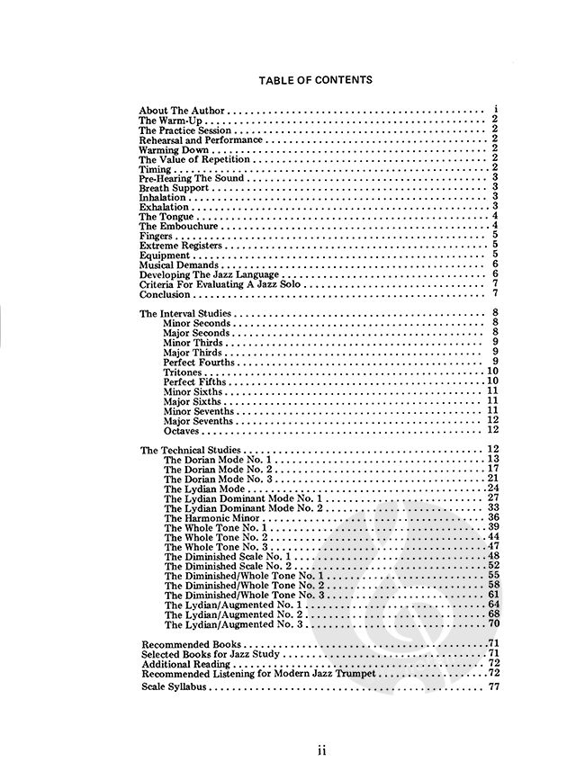 Ton- und Anblasübungen, Atmung, Intervalle, Tonleitern mit rhytmischen u. techn. Übungen, Pentatonik, Blattlese- u. Improvisationsübungen in 12 Tonarten, dt.