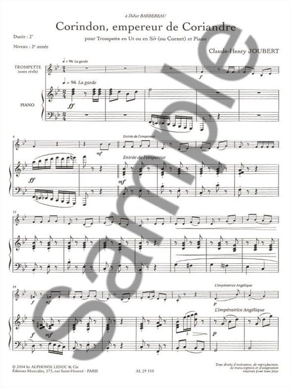 Corindon, Empereur de Coriandre is a piece by Claude-Henry Joubert for Bb or C Trumpet and Piano accompaniment. Written for upper beginners, it lasts for two minutes and corresponds to the story of the Emperor Corridon.