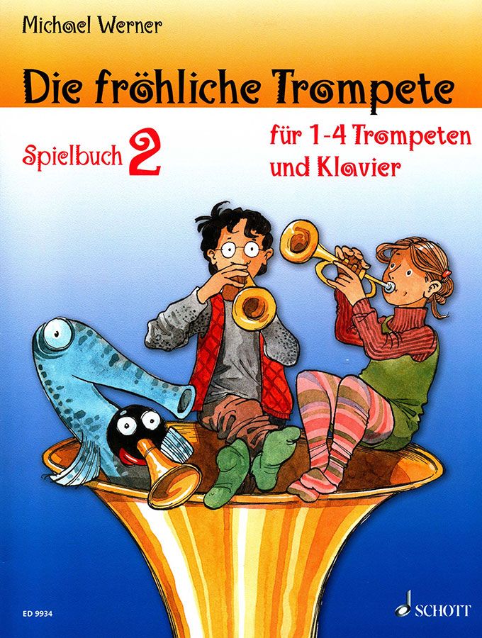 Die Trompetenschule von Michael Werner hat sich mittlerweile zu einem Standardwerk für den Unterricht mit jungen Trompetenschülern entwickelt. Als Ergänzung der beiden Schulhefte (Band 1: ED 9931, Band 2: ED 9932) ist jetzt das 2. Spielbuch erschienen. Es enthält eine reichhaltige und vielseitige Auswahl an Liedern und Stücken: vor allem Duette, einige Trios und Quartette, aber auch viele Stücke für Trompete und Klavier. Mit Werken von Pezel, Schütz, Clarke, Altenburg, Händel, Mozart, Schubert, Fauré, Verdi, Joplin und vielen anderen Komponisten ist das Heft eine Fundgrube für Schülerkonzerte und Unterricht. Die Schwierigkeit der Stücke ist genau auf die Progression des 2. Bandes abgestimmt. Zu vielen Stücken werden auch Anregungen für die Begleitung mit Schlaginstrumenten gegeben.