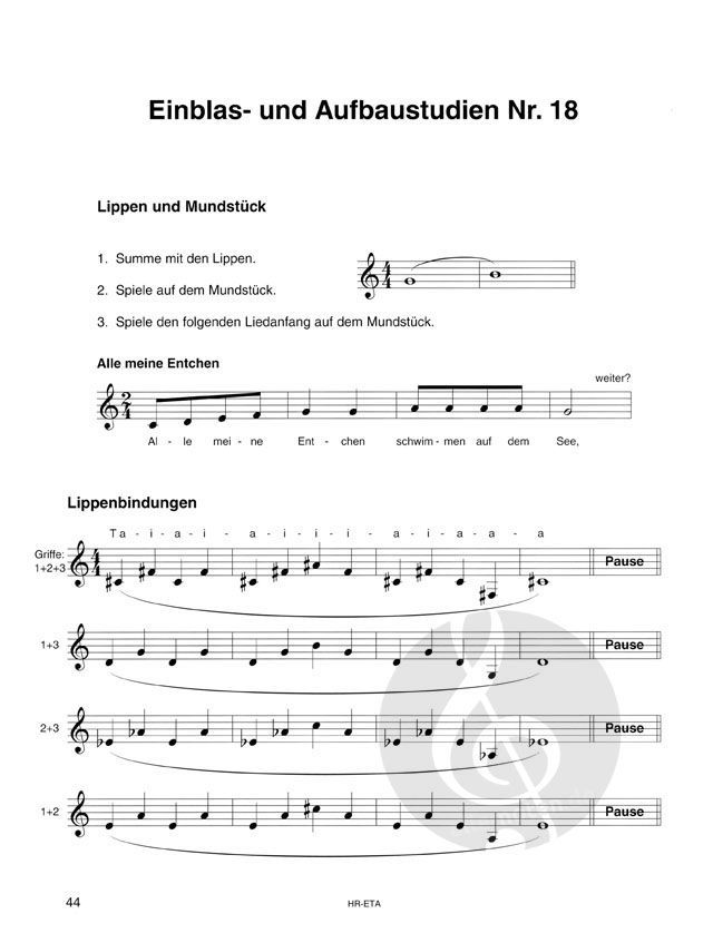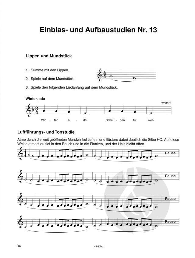 Die Einblas- und Aufbaustudien sind ein tägliches Übeprogramm, das die Grundlagen des Trompetenspiels (Atmung, Stütze, Ansatz, Luftführung, Flexibilität, Klang, hohe Töne) immer wieder trainiert und festigt. Der Band kann parallel zur Trompetenschule Band 2 verwendet werden.