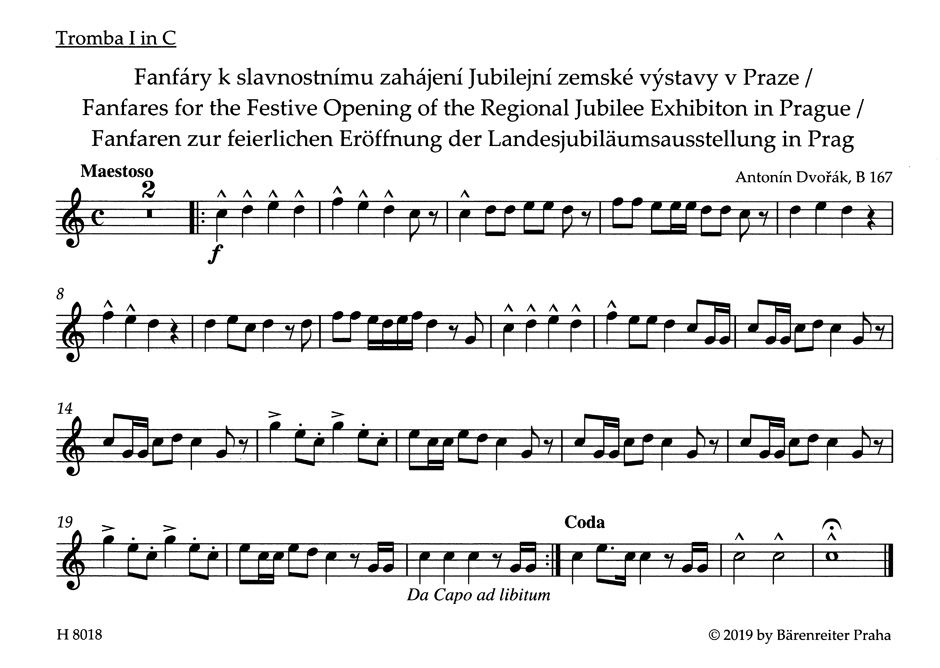 Die Fanfaren für vier Trompeten und Pauken komponierte Antonín Dvorák für die Eröffnung der Landesjubiläumsausstellung 1891 in Prag, die anlässlich des 100. Jubiläums der Industrieausstellung 1791 stattfand.