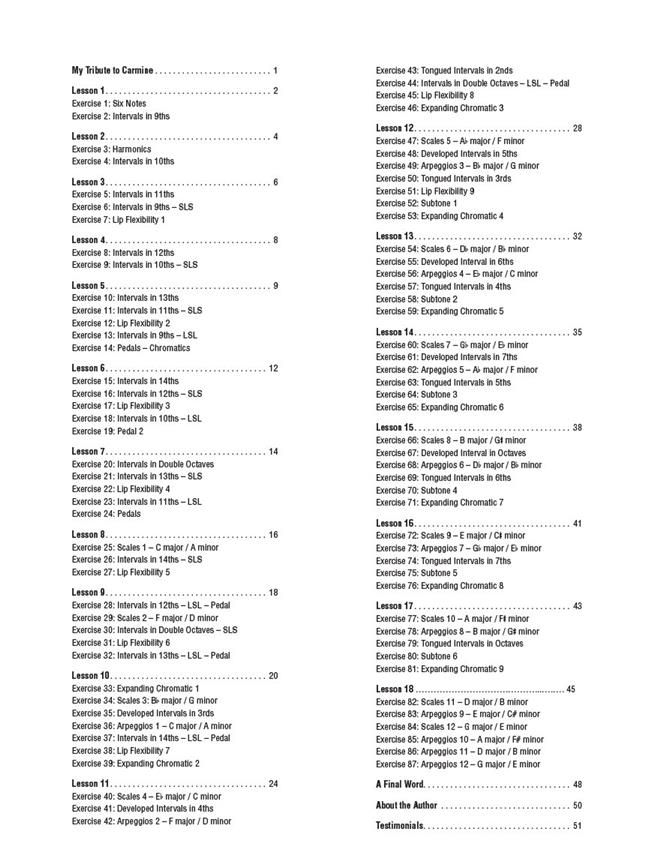 Dieses Buch wurde für den fortgeschrittenen Blechbläser geschrieben, der zu einer optimalen Kondition kommen und sie halten möchte. Behandelt werden u. a. (Übungen für die Technik, Atemstütze und für Pedaltöne. Cornet, Flügelhorn, Posaune (BC), Tenorhorn/Bariton/Euphonium(BC), Trompete, Horn (F), Tuba in C