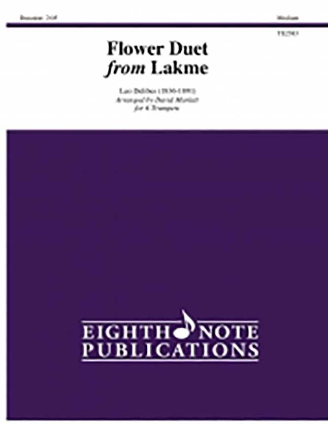 This is the most famous section from Delibes' Lakmé. Originally written as a duet for soprano and alto, it is now a great piece for 6 trumpets.The original duet is performed on trumpets, the next 2 voices perform on cup muted trumpets and the last 2 parts are performed on flugel horns. This creates 3 sets of duets which introduces some very interesting colours to the trumpet ensemble. The flowing duet lines and graceful and elegant phrases make this an great addition to the repertoire.