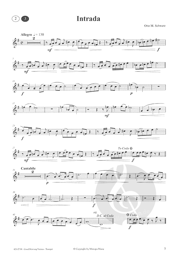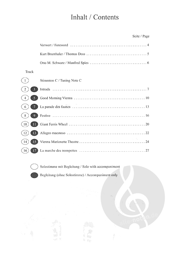 Beim Stichwort Wiener Komponisten denkt man spontan an große Namen wie z. B. Mozart oder Haydn - aber Österreich und seine Hauptstadt haben auch heute noch eine lebendige, aktive Komponistenszene zu bieten! Vier Vertreter dieser Szene schrieben die acht stilistisch abwechslungsreichen Solostücke speziell für Trompete mit Klavierbegleitung in Good Morning Vienna. Diese Stücke eignen sich bestens, um Aspekte wie Dynamik, Phrasierung und Artikulation zu üben. Dabei können Sie sich von der professionell eingespielten CD oder der von einem Pianisten gespielten Klavierbegleitung unterstützen lassen - um sie dann einem geneigten Publikum zu präsentieren!