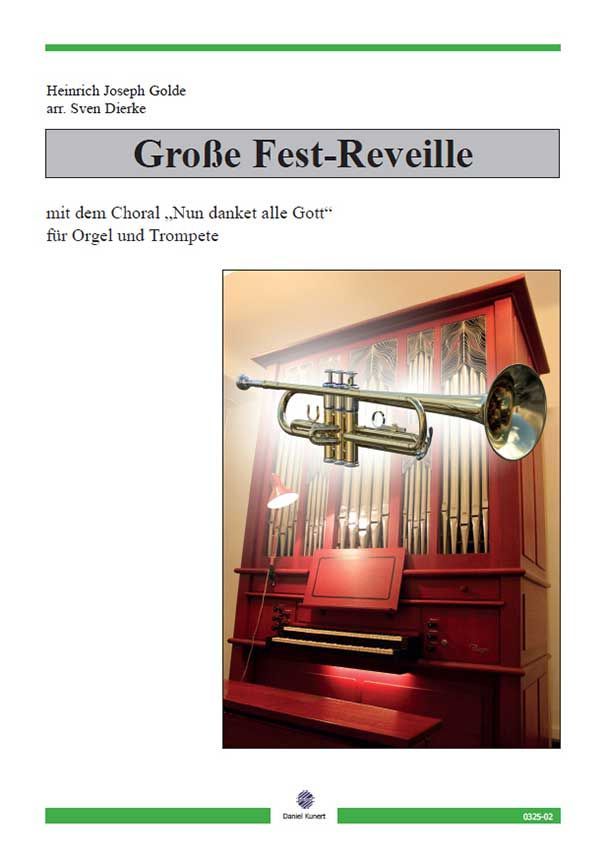 Die Fest-Reveille von Heinrich Joseph Golde erklang einst als Signal zum Wecken oder als Marsch beim Militär und/oder Schützenwesen. Sven Dierke hat das schwungvolle und mitreißende Werk, in dem der Choral "Nun danket alle Gott" eingearbeitet ist, für Orgelund Trompete bearbeitet, wobei der Trompetenpart gut von einem Anfänger zu meistern ist, der Orgelpart hingegen schon einiges an Geschick erfordert.