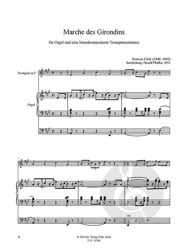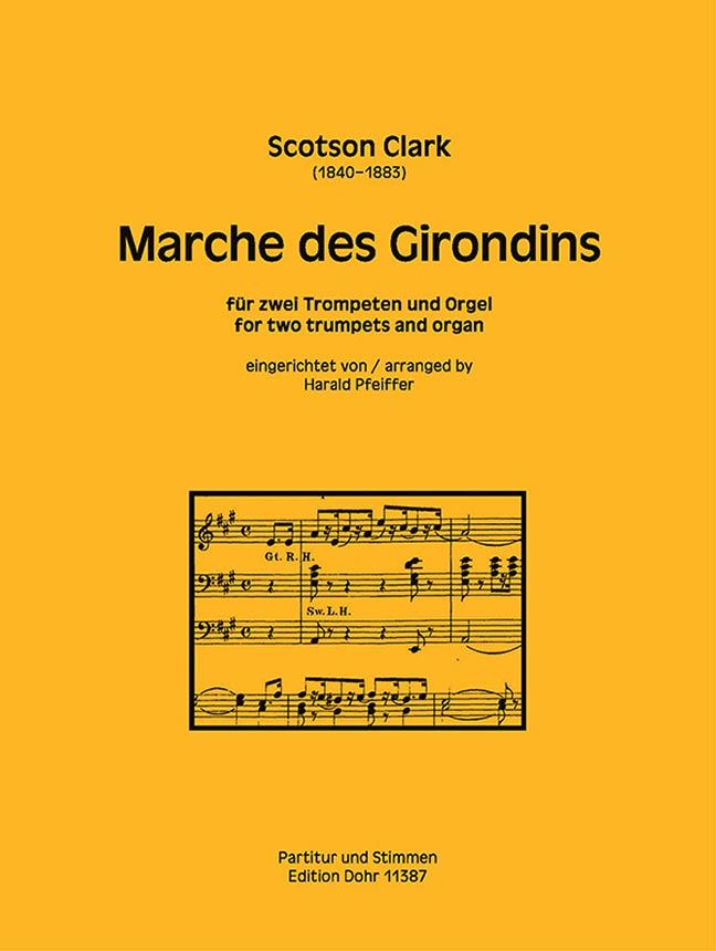 Der 'Marche des Girondins' A-Dur ist im Original für Orgel solo geschrieben. Die Trompetenstimmen sind eine freie kompositorische Ergänzung. Es liegt auch eine Fassung für Orgel und eine Trompetenstimmen (DOHR11386) vor.