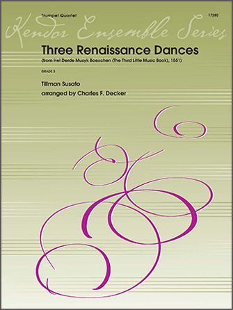 Taken from one of the earliest published collections of Renaissance instrumental dances, these settings for contemporary trumpet quartets produce a brilliant, exciting sound. Following a simple two-part (AB) form, each selection features homophonic construction, root position chords, strong emphasis on primary beats, and individual parts that encompass the range of an octave or less. They can be programmed as a three-movement suite or as separate fanfares.