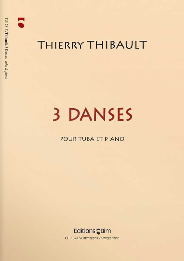 Die 3 Danses (Tänze) für Tuba und Klavier, die in einem kontrastreichen Stil geschrieben sind, ergänzen das Vortragsrepertoire des modernen Tubisten. Der erste Tanz, Molto Tango, in der Form Strophe/Refrain, entführt uns nach Argentinien. Der zweite, Passacaille à deux, ist melancholisch, wie eine Reminiszenz an glückliche Momente unserer Kindheit. Das dritte, Gigue tronquée, ist ein systematischer und spielerischer Kampf zwischen der Tanzbewegung und den störenden Elementen der Entwicklung. Sie bildet, wie zur Zeit der barocken Suiten, einen lebendigen und dynamischen Schluss.