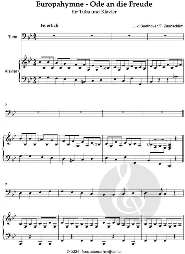 Ein klassisches Arrangement von Beethovens Melodie mit einfacher Klavierbegleitung, das eine würdige und optimistische Stimmung erzeugt.