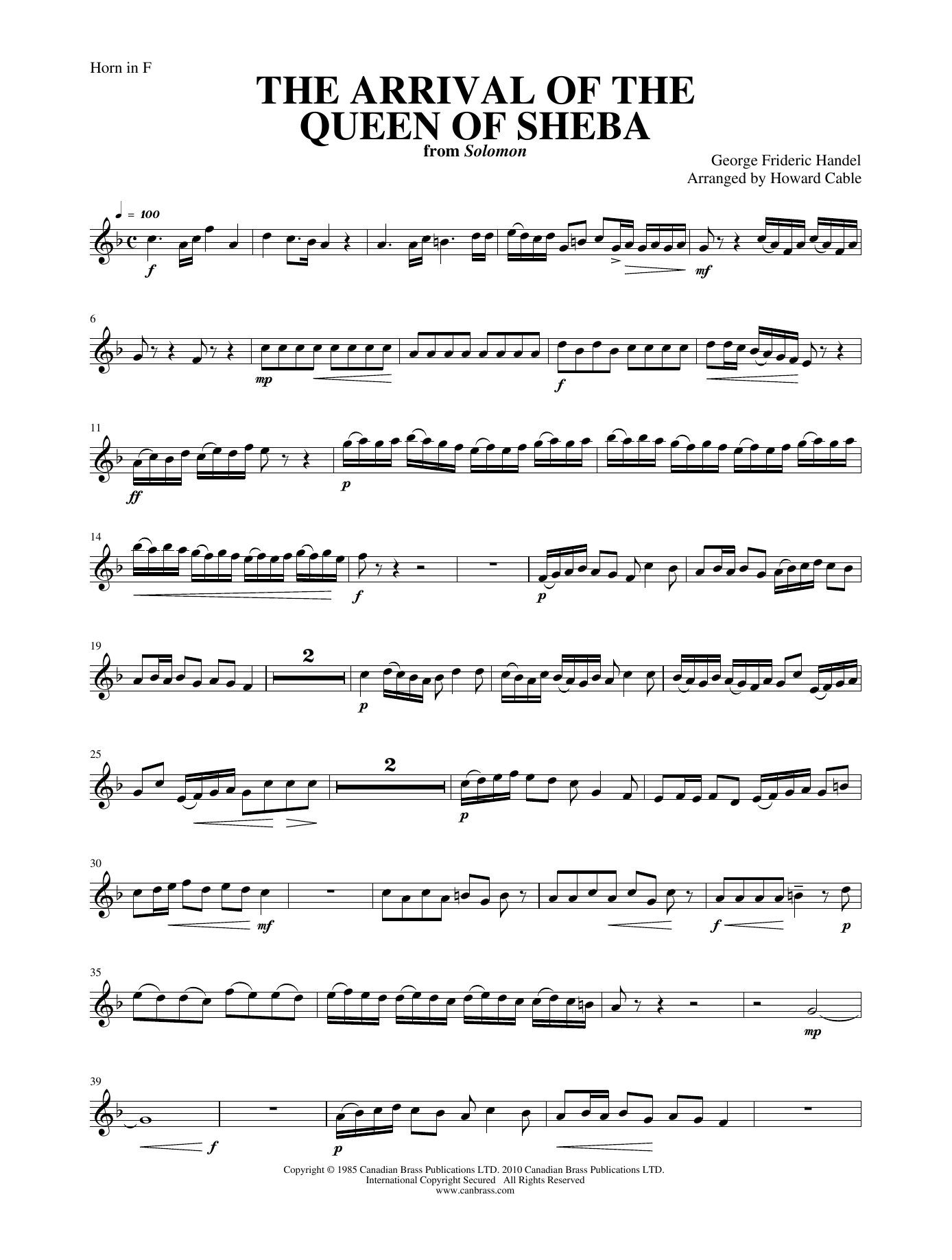 Arrival of the Queen of Sheba - F Horn