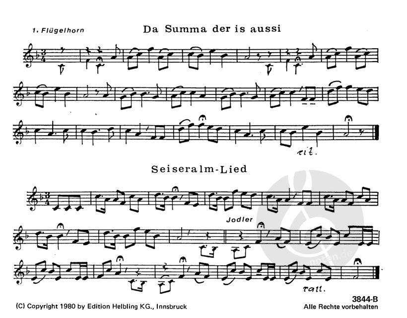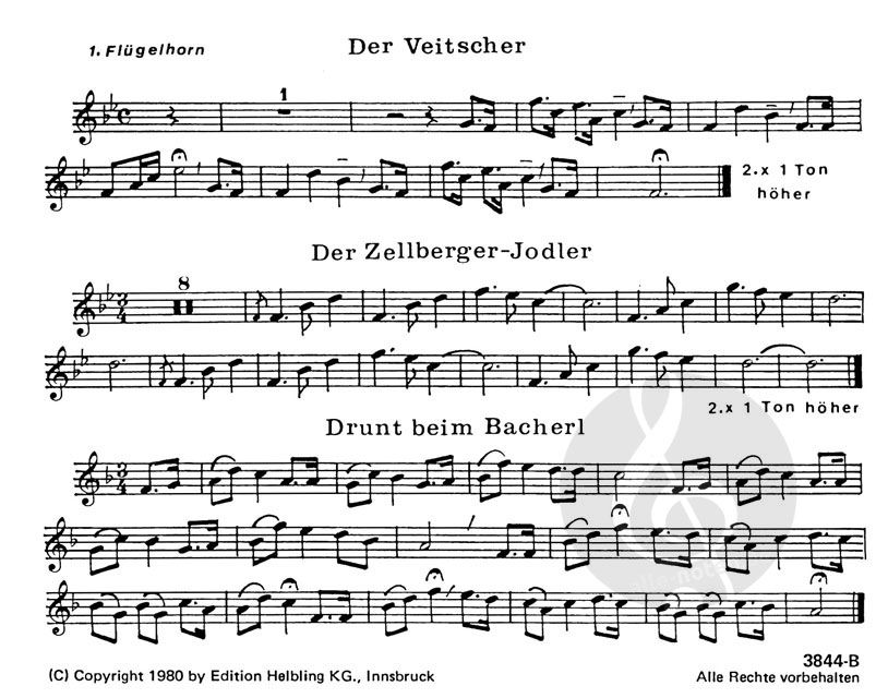 zusammengestellt von Peter Moser, Florian Pedarnig,Peter Reitmeir - 1. und 2. Flügelhorn in B, Horn in Es, Euphonium in B, Posaune in B, Bass in C.