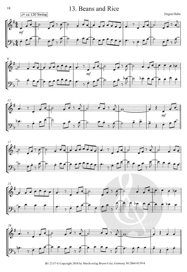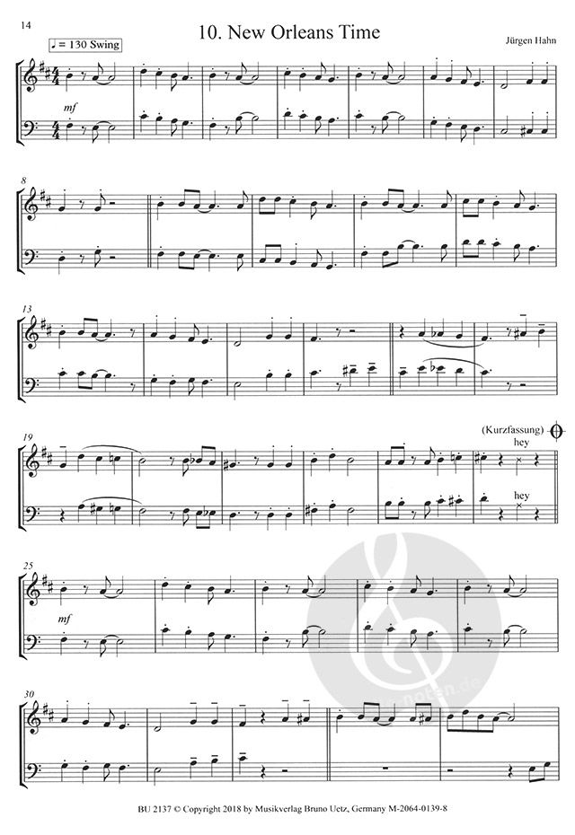 Die besten Dixielands für Trompete und Posaune komponiert und arrangiert von Jürgen Hahn.Gut geeignet für den Einstieg in die Swing- bzw. Dixiephrasierung. Trompetenstimme nicht hoch, geht fast nie über das notierte e''. Dieses Heft gibt es auch in einer Ausgabe für 2 Trompeten UETZ2130 und für 2 Posaunen UETZ2317.