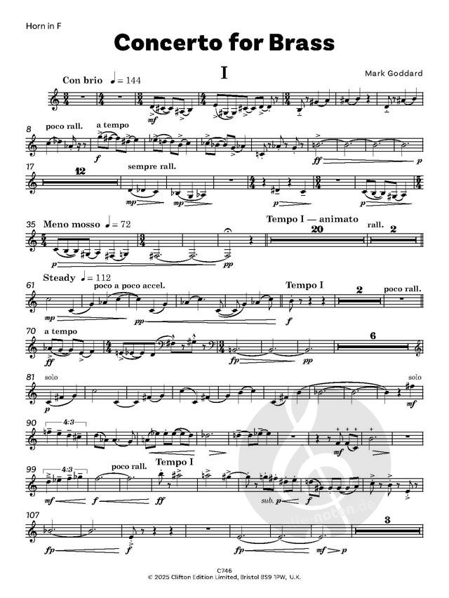 Concerto for Brass ist ein anspruchsvolles Werk für zehnköpfiges Blechbläserensemble in drei Sätzen.