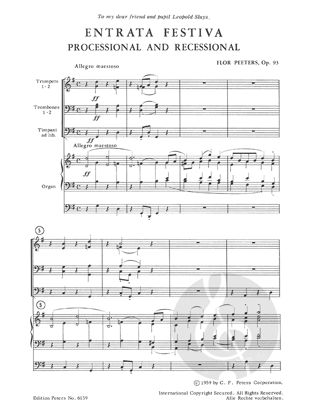 Processional and Recessional for 2 Trumpets, 2 Trombones, Organ, Timpani ad lib. and Choir ad lib.