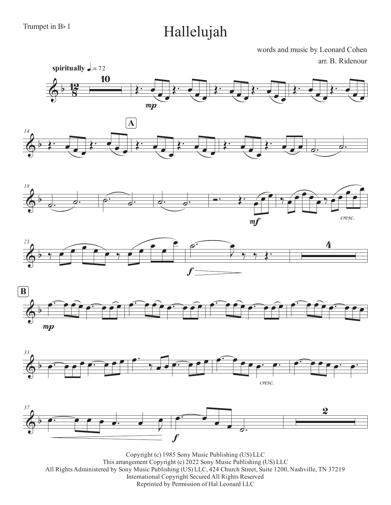 Hallelujah - Bb Trumpet 1