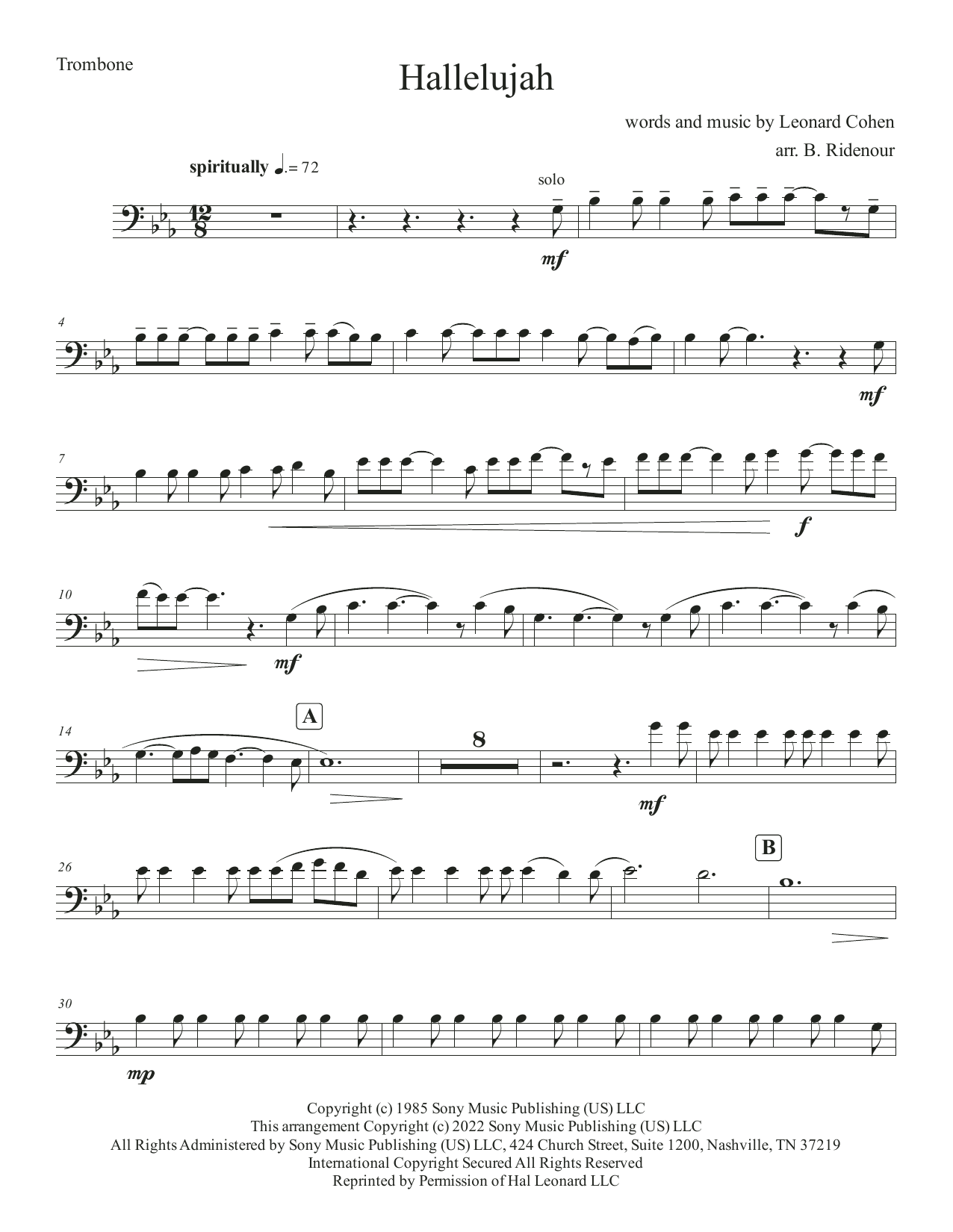 Hallelujah - Trombone