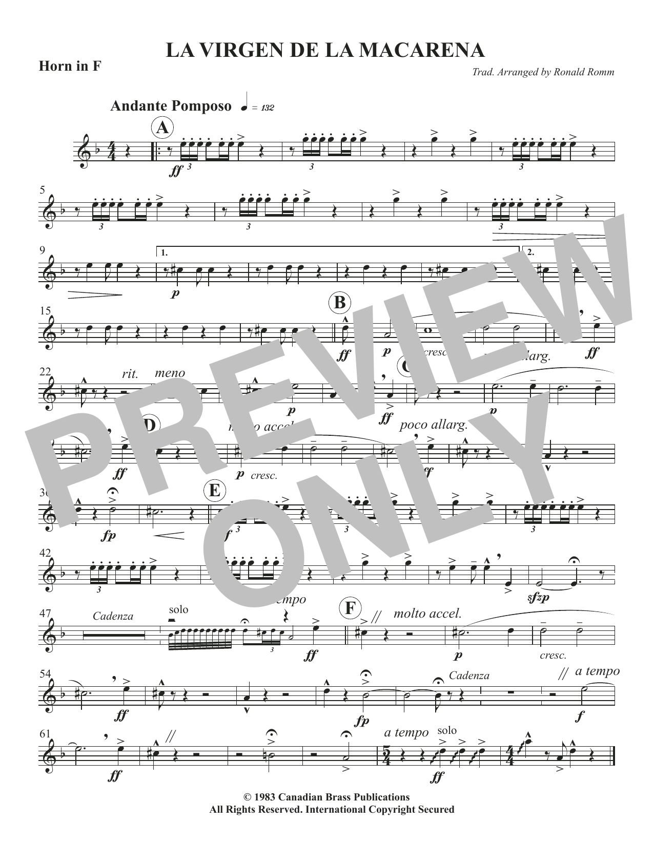 La Virgen De La Macarena - F Horn