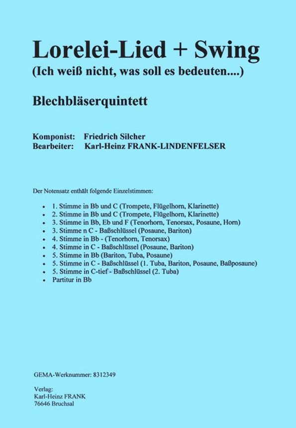 Besetzung: 1. Stimme in Bb, C und Eb, 2. Stimme in Bb , C und Eb, 3. Stimme in Bb, C, Eb und F, 4.Stimme in Bb und C, 5. Stimme in Bb, C und Eb, C-tief, Schlagzeug, Partitur in Bb.