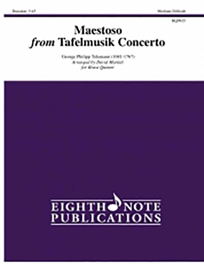 Originally for 2 horns and strings, this arrangement now features the 2 trumpets with the remainder of the ensemble performing the string parts. The first trumpet part works best when played on E-flat trumpet to keep the lightness and grace in the writing and an agile trombone player is required to perform the arpeggiated string lines. The stately maestoso is an often performed work especially by period instrument ensembles and the fanfare-type figures lend themselves well to the brass quintet. At less than 3 minutes in length, this work is not too strenuous but is an interesting addition to the quintet repertoire.