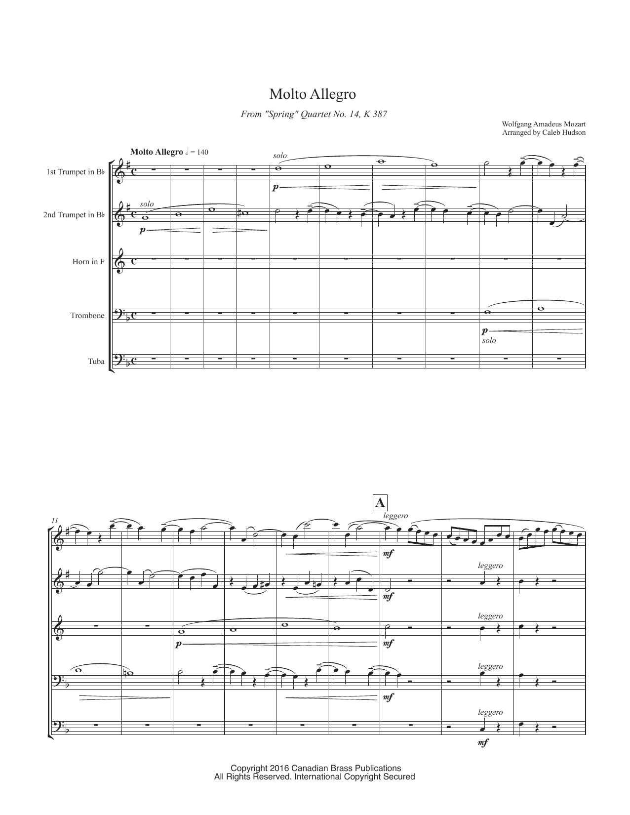 Molto Allegro from Spring Quartet, No. 14, K 387 - Full Score