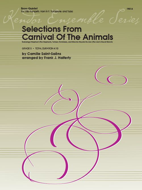 This classic work by Camille Saint-Saëns is a terrific addition to the brass quintet repertoire. With the entire ensemble sharing the thematic material throughout the three movements - The Elephant, Tortoises, and The Lion's Royal March - this grade 5 edition fills a real need for great all-occasion programming material for standard brass quintets. Instrumentation includes 2 Bb trumpets, horn in f, trombone, and tuba. Total duration 4:10.