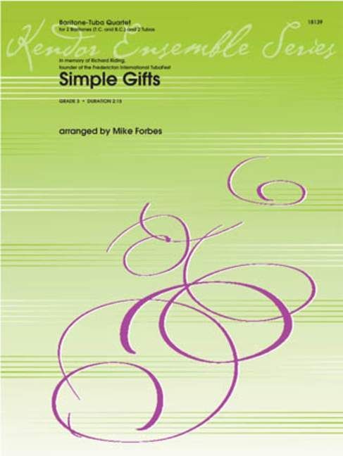 Popularized by Aaron Copland in his 1944 score for Appalachian Spring, this 19th-century Shaker dance tune lends itself beautifully to the rich sound of a baritone-tuba quartet. This fun-loving, theme-and-variations treatment gives each member of the group interesting material to play.