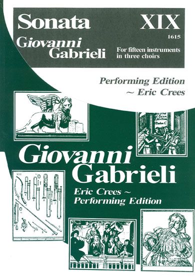 Conceived for three large groups of five players apiece, this sonata combines grandeur and virtuosity for the three principal players of each choir.