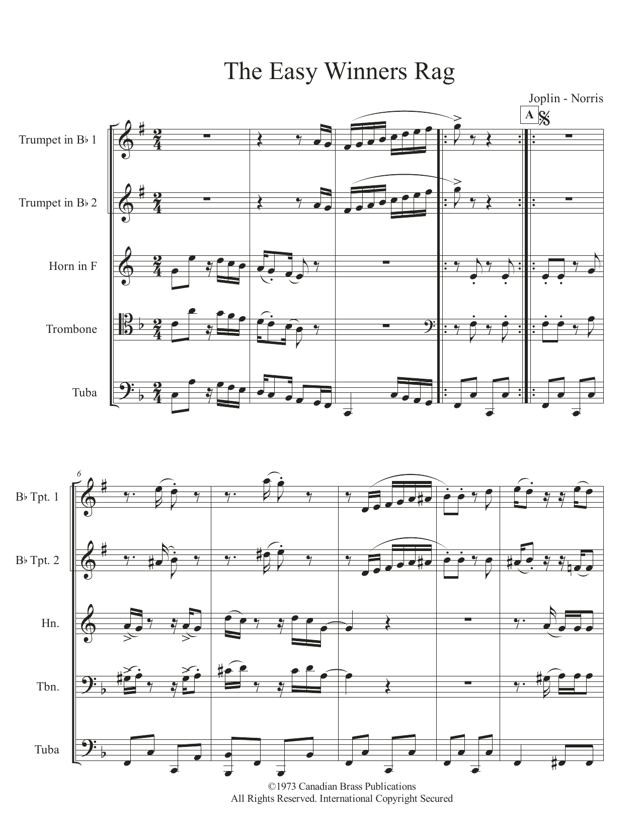 The Easy Winners Rag - Full Score