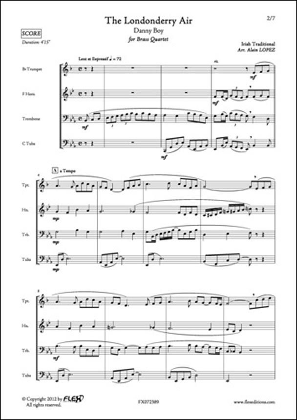 The Londonderry Air (Danny Boy) is an Irish Hymn. It is a popular melody in the Irish diaspora and is also used by the Northern Ireland as the National Hymn before some sport events. - Alain LOPEZ /. Instruments: Bb Trumpet, F Horn, Trombone, Tuba. Difficuly Level: Grade 3. Duration: 4'15. Musical Style: Classical. Category: Arrangement. Composer: TRADITIONAL. Arranger: LOPEZ Alain