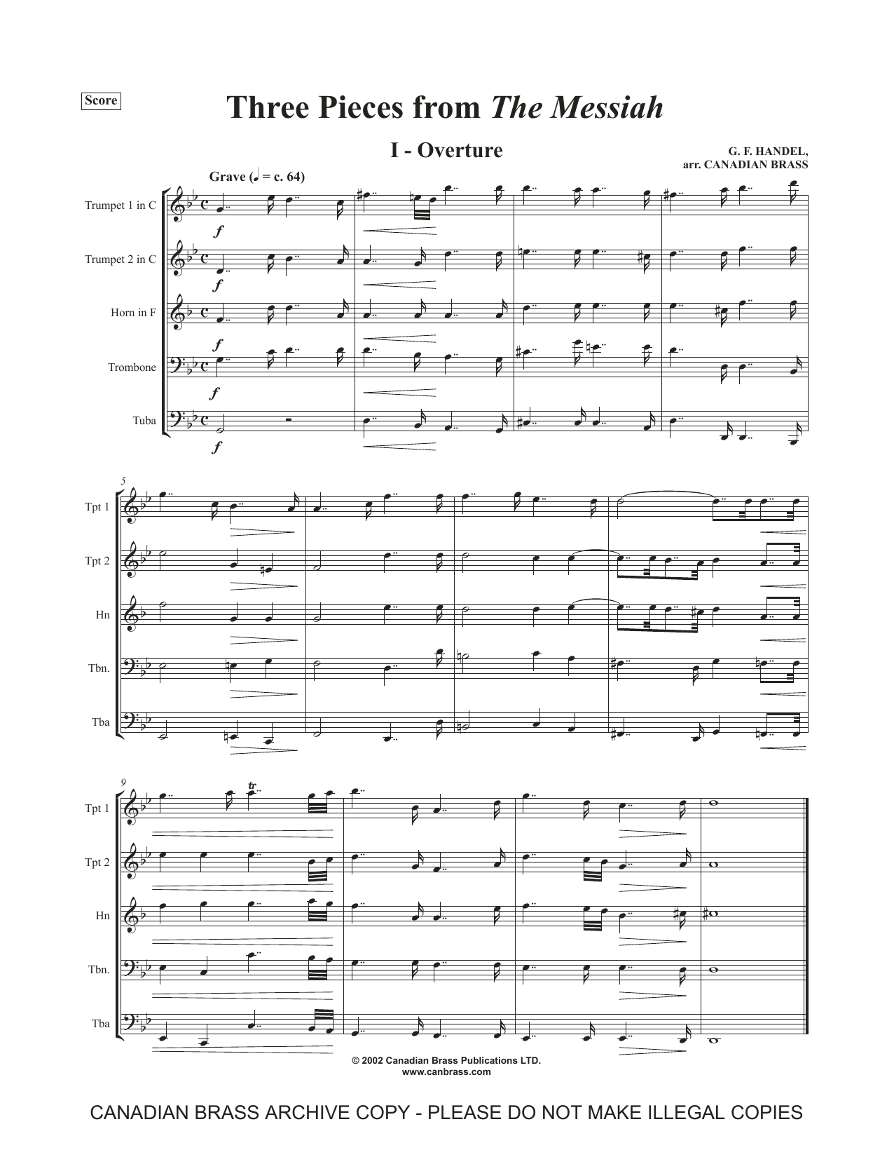 Three Pieces from the Messiah - Full Score