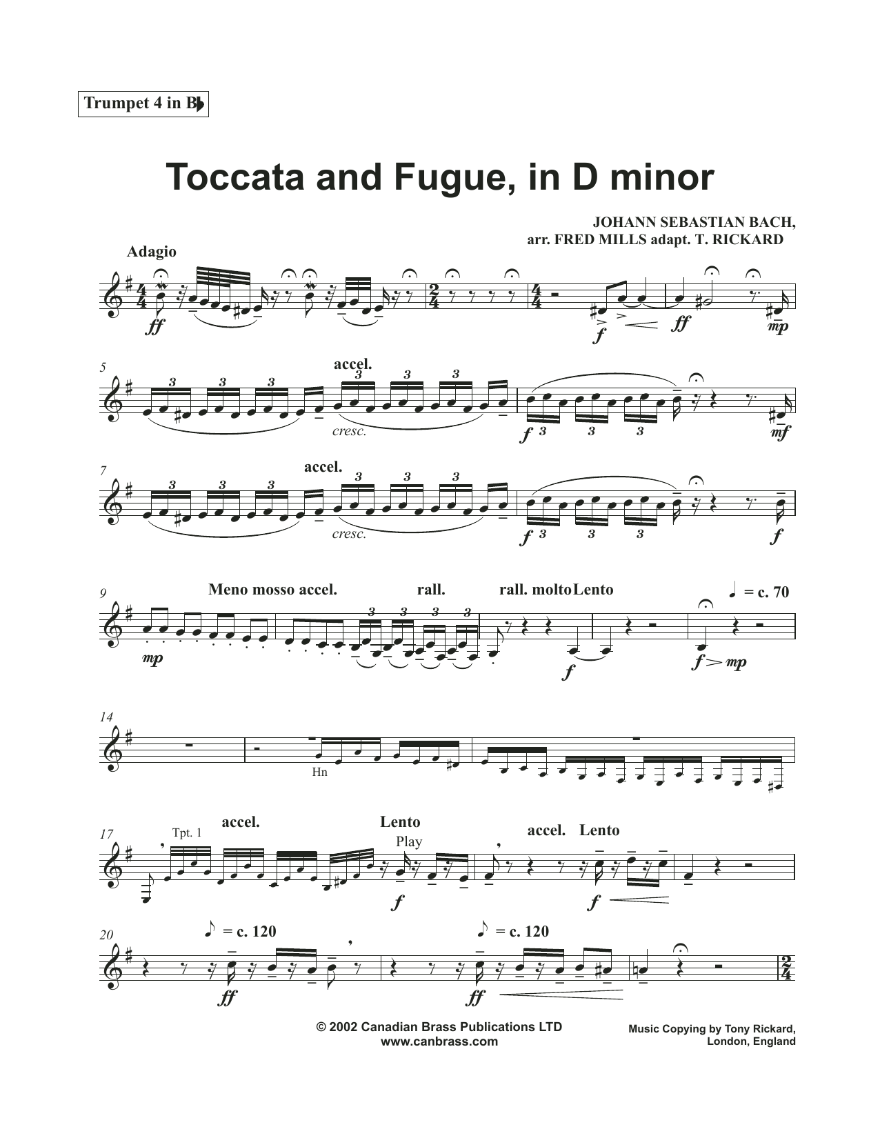 Toccata and Fugue in D Minor - Bb Trumpet 4