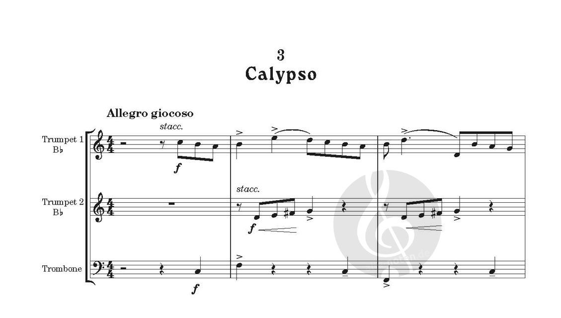 Trinidad Trio: für zwei Trompeten und Posaune. Vier lustige Sätze, die in einem Calypso enden.