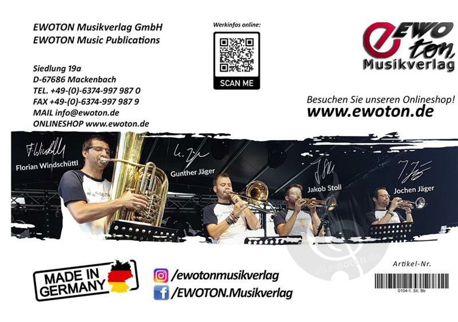 Zehn ausgewählte Titel aus dem EWOTON Musikverlag wurden von den Musikern des gleichnamigen Quartetts eigenhändig arrangiert. Im Heft enthalten sind absolute Klassiker wie Heut ist unser Hochzeitstag (Die Kapelle hat gewonnen), Kannst du Knödel kochen oder auch die allseits bekannte Borsicka-Polka. Neben weiteren Polkas, einem Konzertmarsch und einem wunderschönen Walzer gesellt sich auch eine Eigenkomposition Läuft bei uns... der 4erMucke in die Stückauswahl. Abwechslungsreich und eingängig gestaltet, sind die Stücke absolut für Jedermann zu empfehlen.
