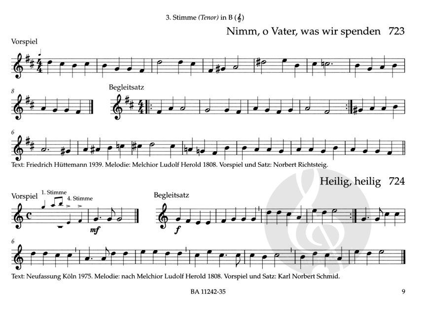 Die Ausgabe enthält Intonationen und die zugehörigen Sätze zur Gemeindebegleitung sowie eine außergewöhnliche Vielfalt an Einzelstimmen. Angeboten werden Stimmen für sämtliche einschlägigen Blechblasinstrumente, wodurch den verschiedenen Besetzungen von Bläserensembles in besonderer Weise Rechnung getragen wird.