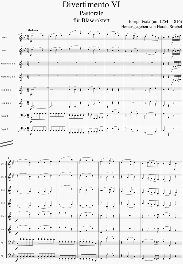 - Besetzung 2 Oboen, 2 Klarinetten, 2 Hörner und 2 Fagotte