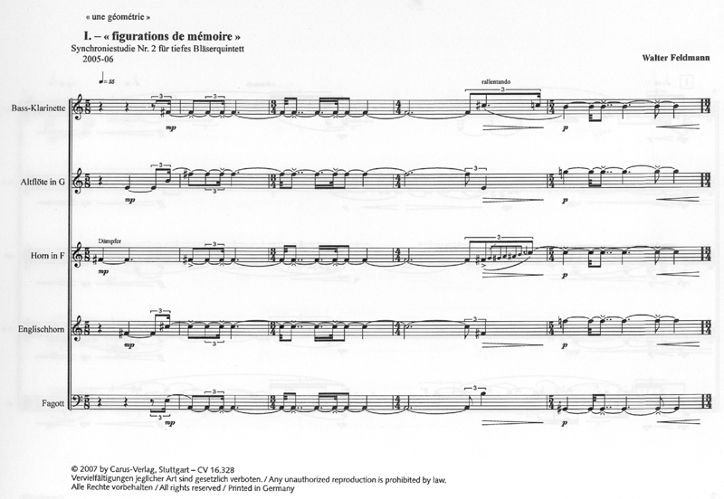 Synchroniestudie Nr. 2 für tiefes Bläserquintett - Altflöte in G, Eh, Bass-Clt, Fg, Cor