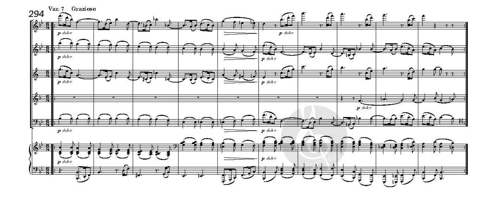 Vollständige Partitur und Satz mit 5 Bläserstimmen plus einer separaten Klavierstimme.