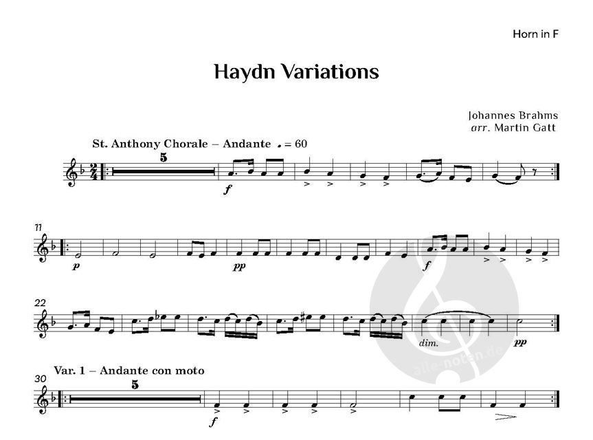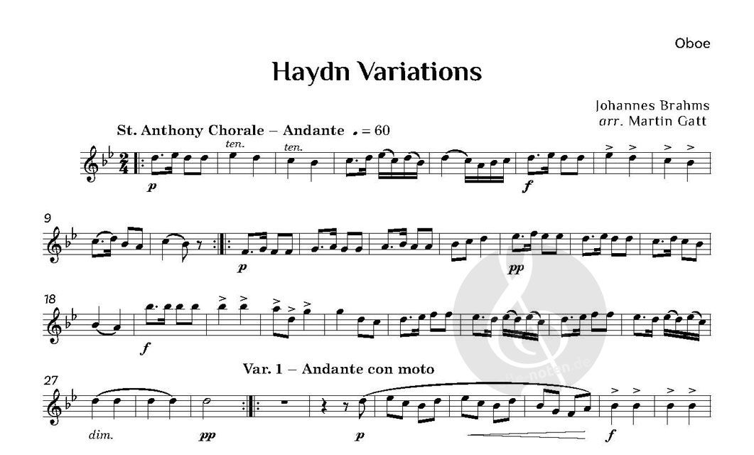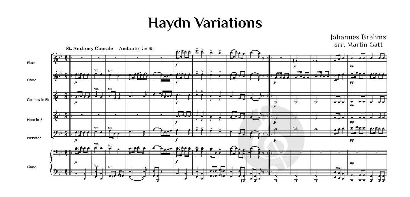 Die Variationen über ein Thema von Joseph Haydn, auch bekannt als die St. Antonius-Variationen, ist ein Werk in Form von Thema und Variationen, das 1873 in Bayern komponiert wurde. Es besteht aus einem Thema in B-Dur, das auf einem "Choral St. Antoni" basiert, acht Variationen und einem Finale. Das Werk wurde ursprünglich in zwei Versionen veröffentlicht: für zwei Klaviere (Op. 56B) und für Orchester (Op. 56A). Diese Bearbeitung von Martin Gatt für Bläserquintett und Klavier wurde erstmals 2017 bei Phylloscopus Publications veröffentlicht.
